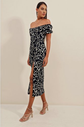 • 2396 Yırtmaçlı Yazlık Örme Elbise ASiyah