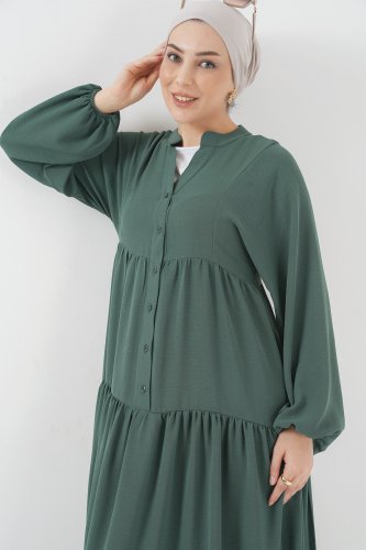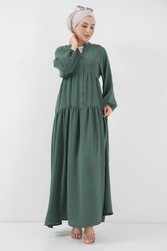 • 2527 Uzun Tesettür Elbise Zümrüt Yeşili