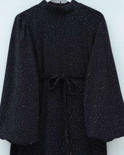 • Hakim Yaka Kuşaklı Taşlı Astarlı Elbise Laci
