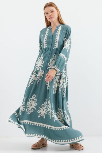 2423 Otantik Desenli Tesettür Elbise FMint