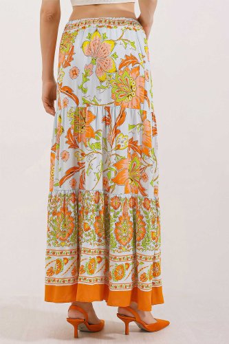 1898 Desenli Uzun Etek Turuncu